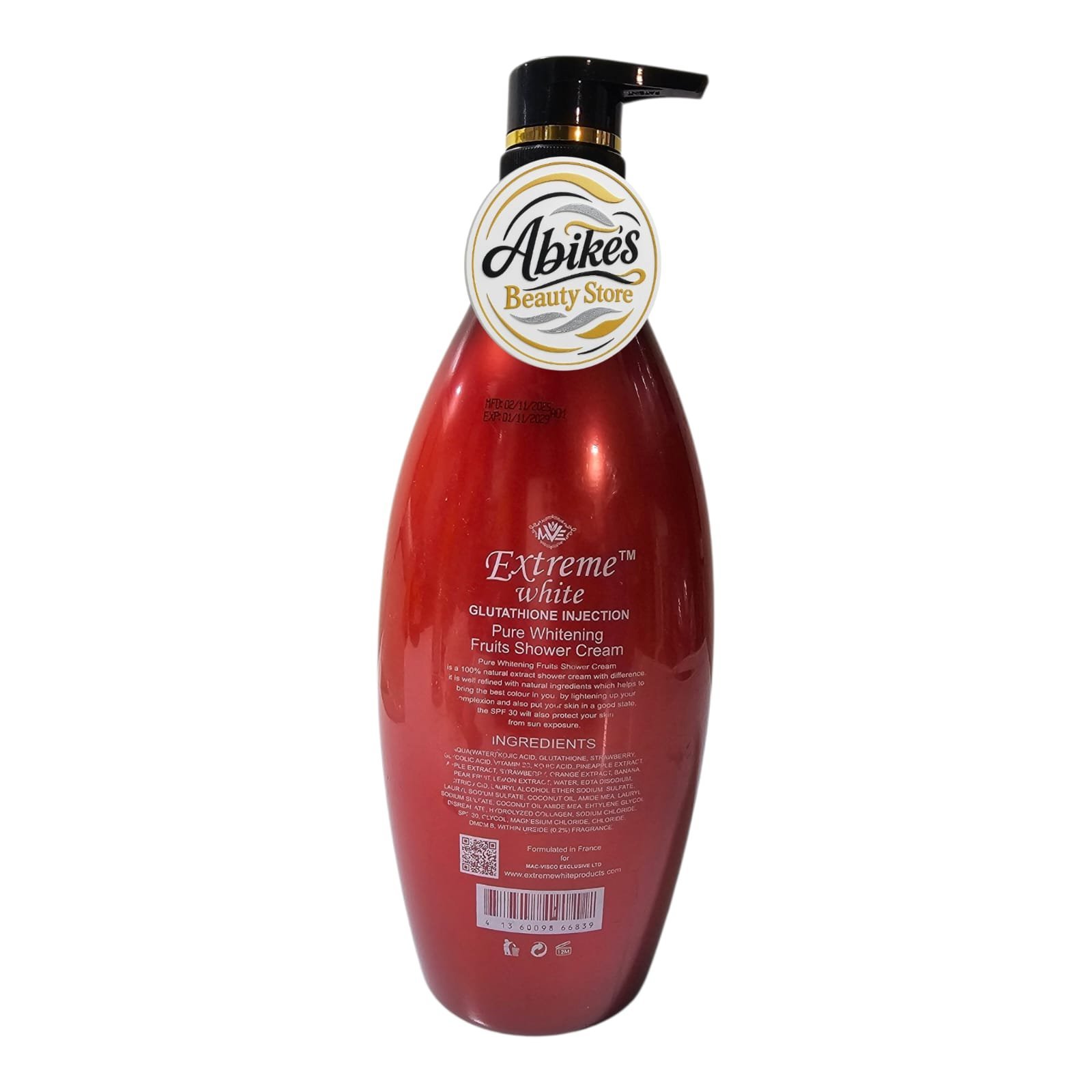 Indulge your skin in the nourishing power of nature with our Extreme White Pure Whitening Fruits Shower Cream. This unique formula is a concentrated “Glutathione Injection” treatment designed to brighten, protect, and revitalize. Packed with a vibrant blend of natural fruit extracts—including pineapple, strawberry, apple, and lemon—this shower cream offers a 100% natural extract approach to achieving a flawless, radiant complexion.