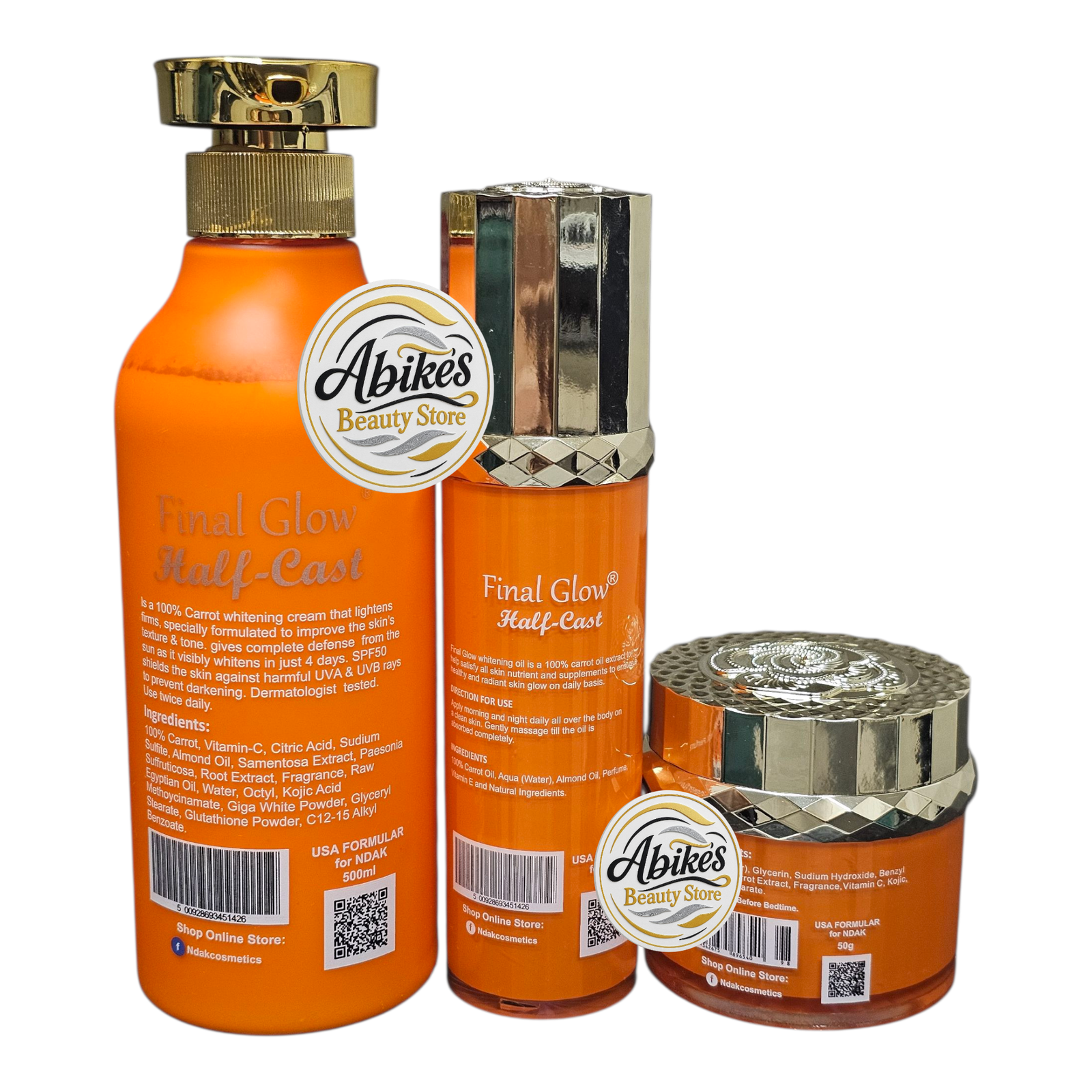 Experience radiant, nourished skin with the Final Glow Half-Cast Carrot Set, a premium 3-step skincare system formulated to help improve skin tone appearance, promote a healthy glow, and support smoother-looking skin. Enriched with carrot extract, vitamin C, antioxidants, and skin-loving oils, this set is designed to help your skin look brighter, clearer, and more refined.