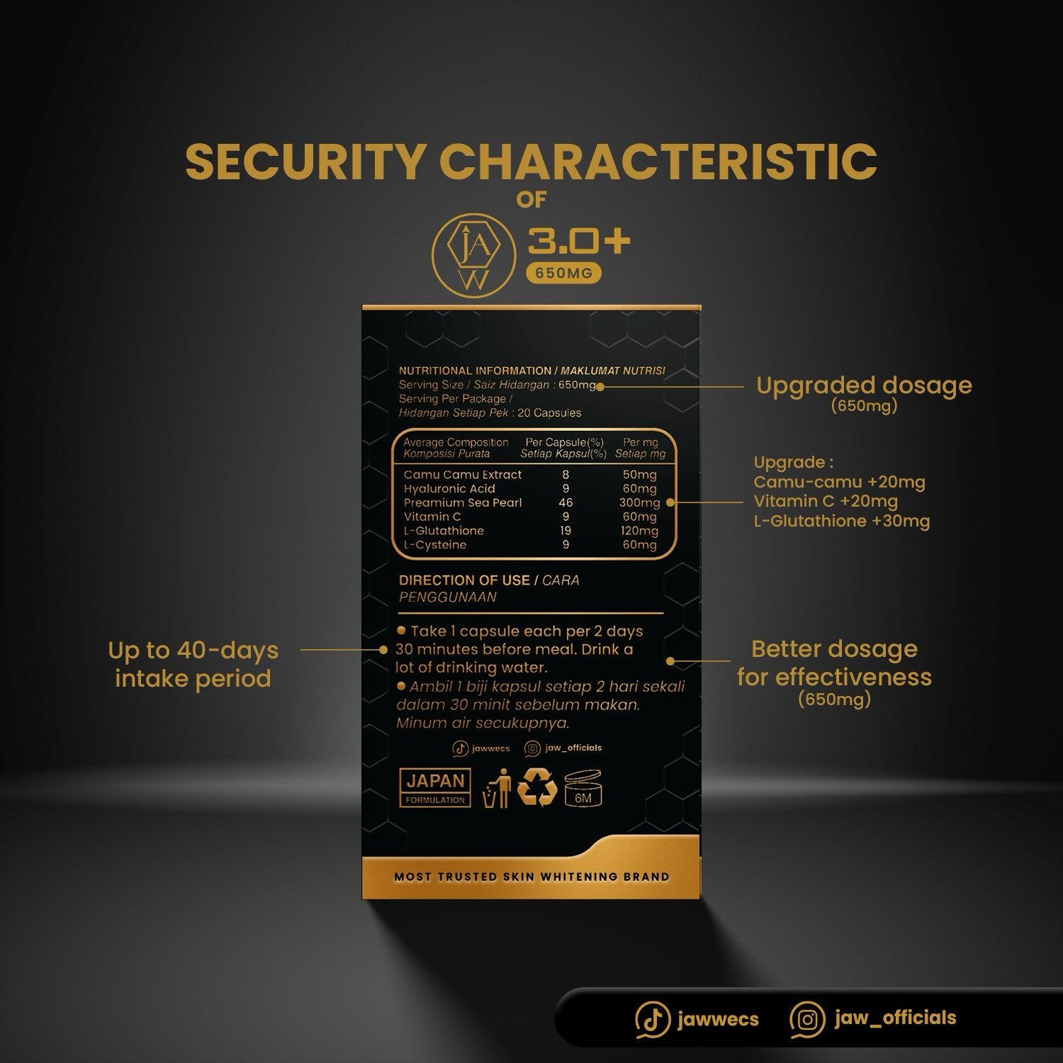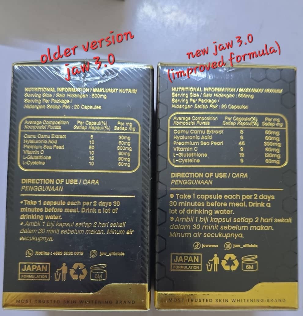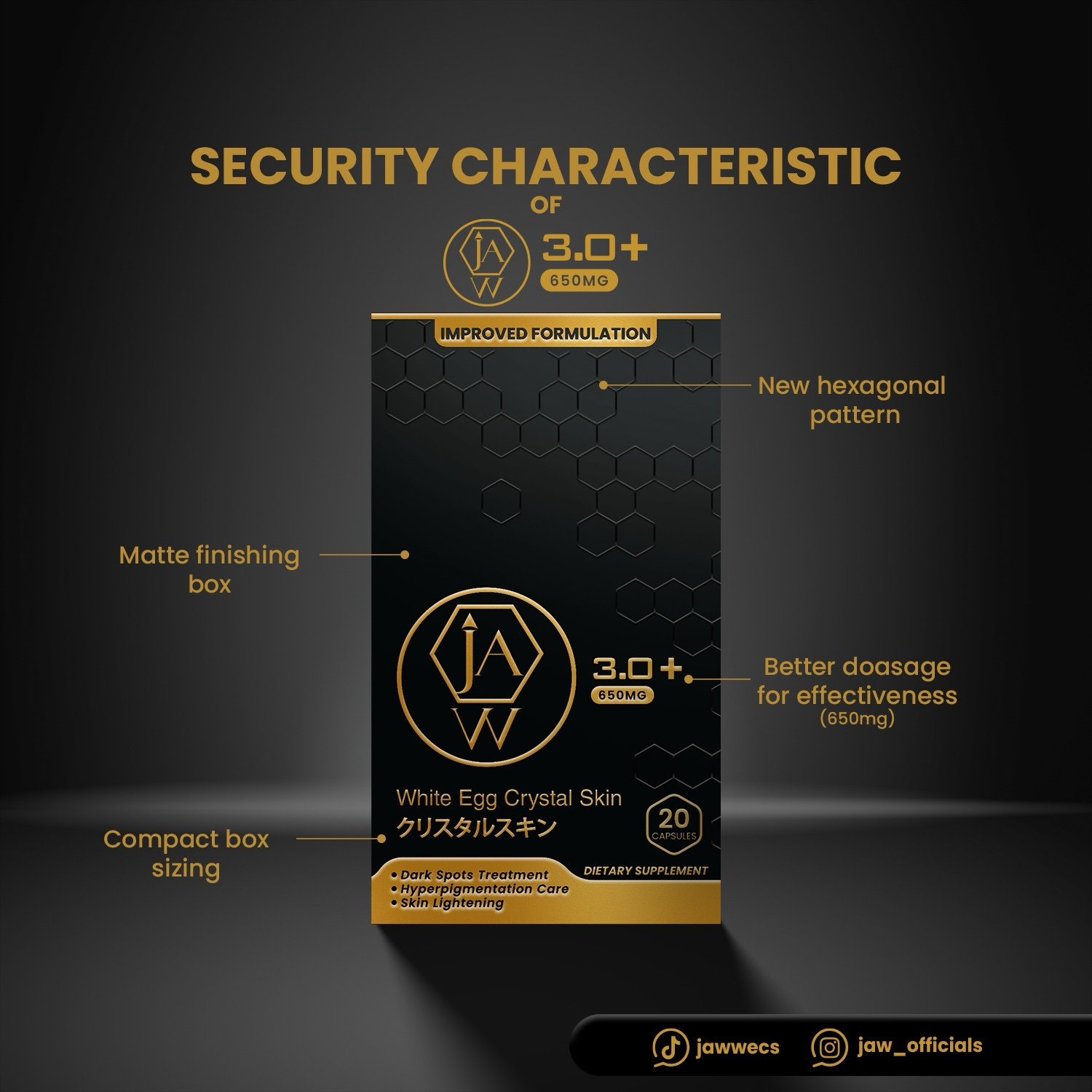 The new improved JAW White Egg Crystal Skin 3.0 plus supplement is a whitening supplement formulated in Japan with a composition of premium ingredients to make your skin smooth, clear and bright.
