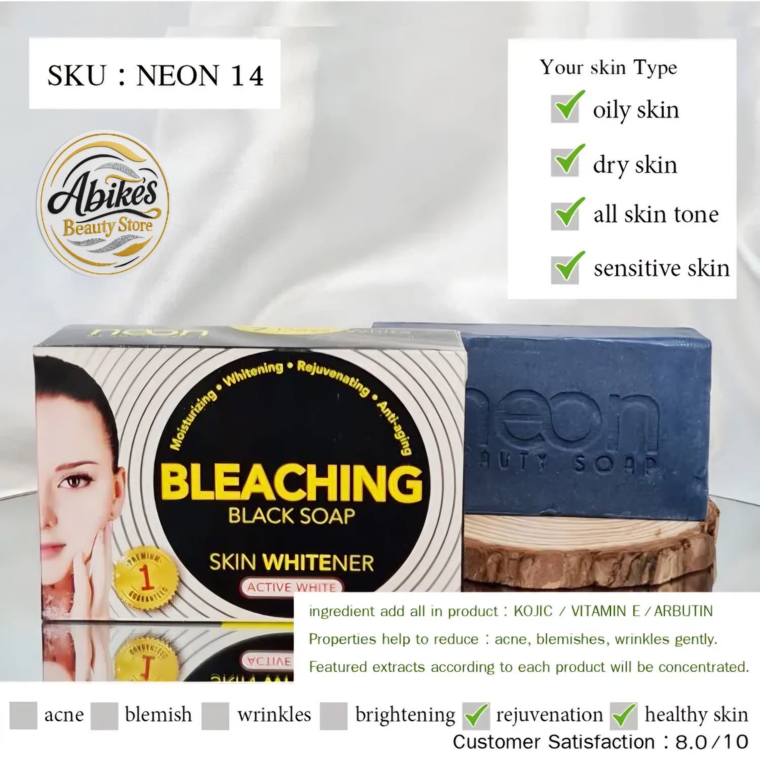 Neon Beauty Soap is more than just a cleanser; it is a comprehensive Bleaching and Whitening Program in one bar. Infused with a potent mix of Glutathione, Kojic Acid, and Vitamins C & E, it works to deeply cleanse the skin while actively inhibiting melanin production for a visibly fairer and more radiant complexion.
