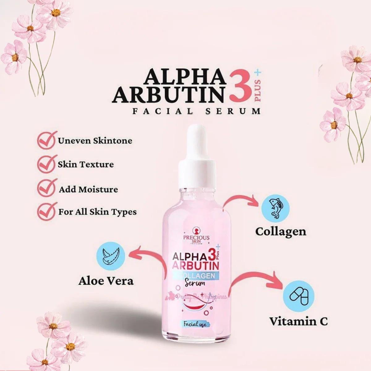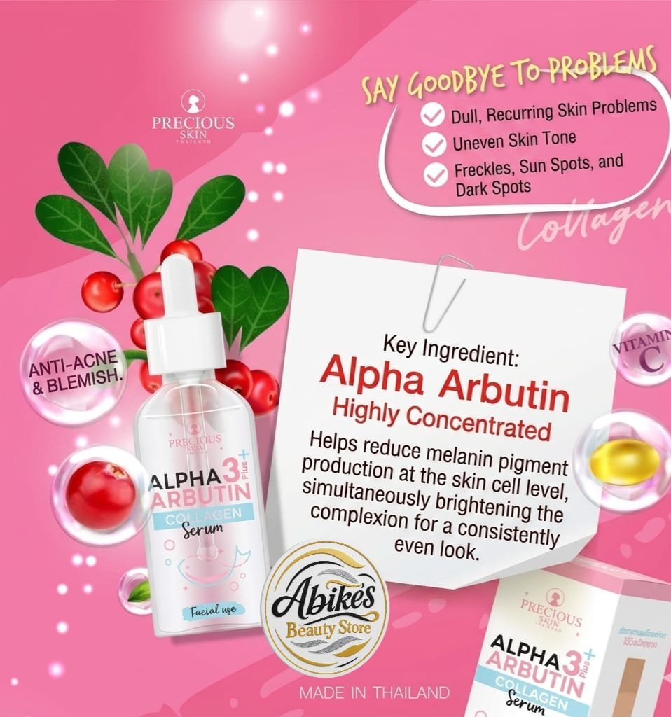 Say goodbye to dullness and stubborn skin concerns with the Precious Skin Thailand Alpha Arbutin 3 Plus Collagen Serum. This high-potency facial serum is a concentrated formula designed to target hyperpigmentation, acne scars, and signs of aging at the cellular level.