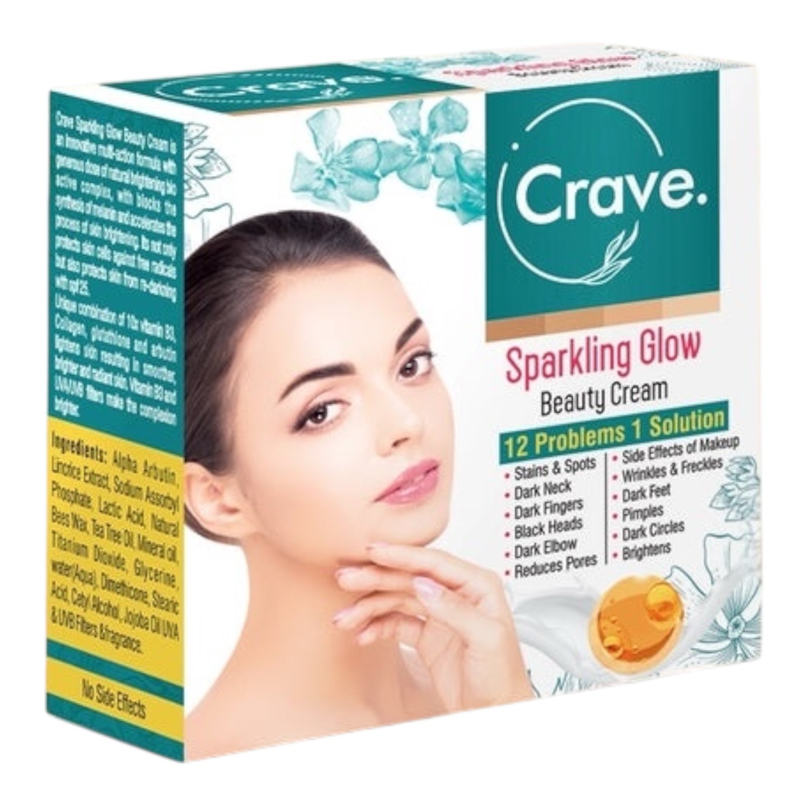 Get a radiant, clear complexion with Crave Sparkling Glow Beauty Cream. This powerful Cream tackles 12 common skin problems, providing visible results in just 5 days. Whether you’re dealing with dark spots, blemishes, or uneven skin tone, Crave Sparkling Glow Beauty Cream is your ultimate all-in-one solution for vibrant, healthy skin. Experience the transformation and embrace your natural glow!