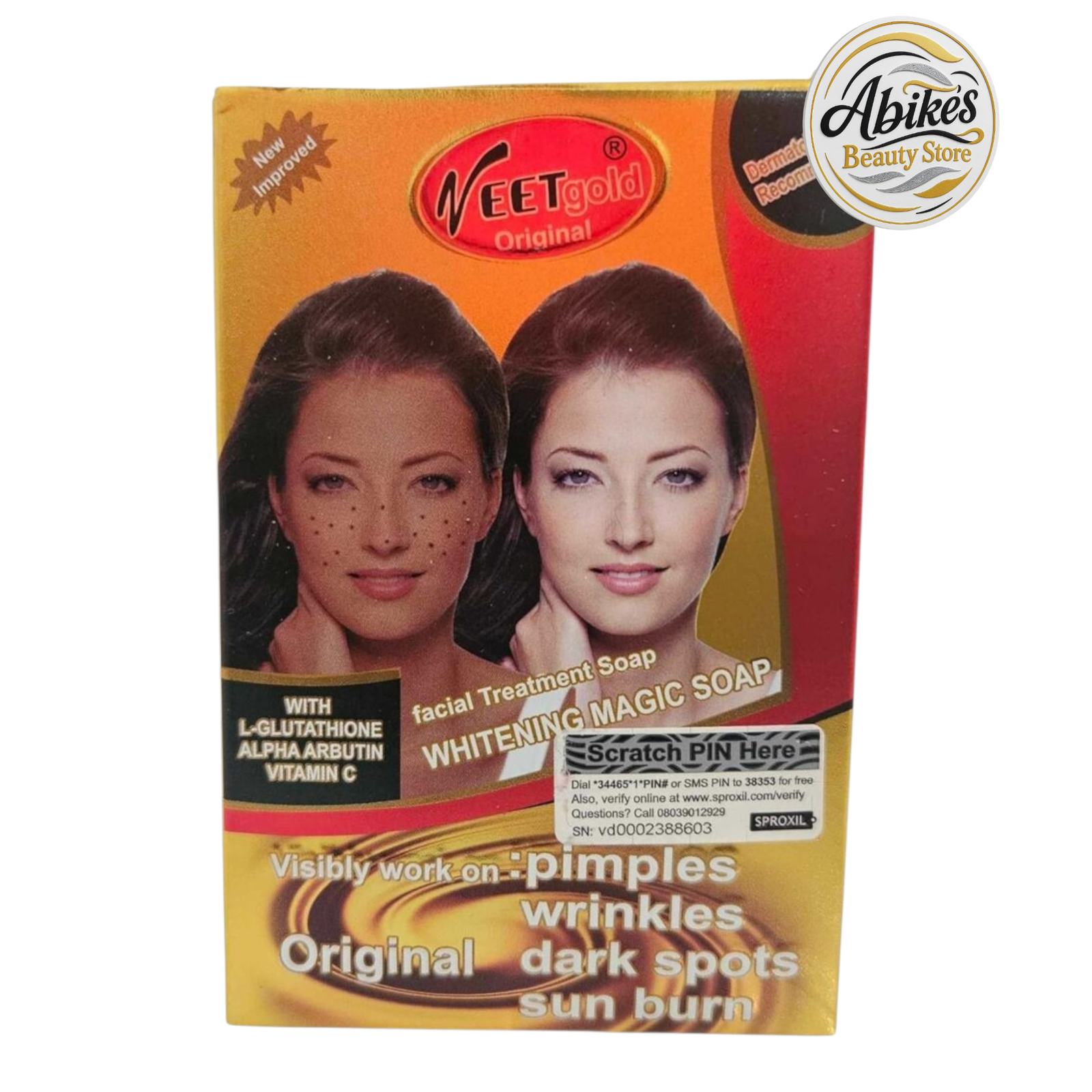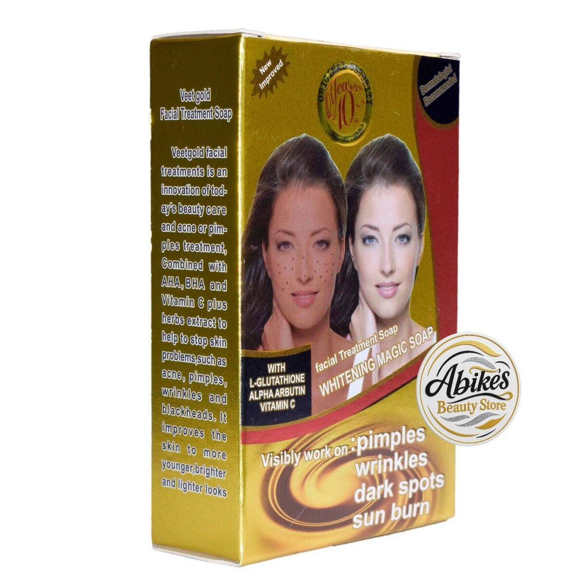 Veet Gold beauty soap is a skin beauty care soap; rich in L-Glutathione, Alpha-arbutin, B-carotene and Vitamin A, C & E which help in the treatment of black spot, pimples, wrinkles, sun burn and living the skin satin-smooth. Its components and active principles are all natural and specifically designed to deep-clean your skin, protect it and give you a smooth, toned skin with the feeling of satisfying well-being.